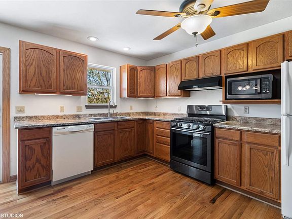 Sharp Ranch!! This home features a floor plan that fits today's lifestyle perfectly. Living room has oversized windows allowing natural light to stream in! Combined open flow great room, kitchen & dining area have hardwood floors and overlook the back yard. Main floor Master suite has walk in closet and huge master bath. Two additional main floor bedrooms are generously sized. 1st floor laundry center includes closet for plenty of storage space. 2 car attached garage. Backyard is fully fenced and deck. Egress window in basement. Updates include: Stove 2019, Washer & Dryer 2018 & Furnace 2019.