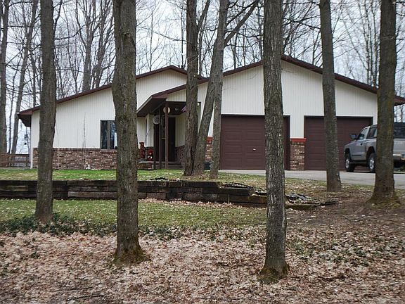 What is a VIEW WORTH?-PRICELESS! This walkout is located on the south end of the All Sports Lake 27 on over 2 acres with 208 feet of sandy frontage. Enjoy the 3 bedroom, 2 bath with large living room and decks to view the lake. This home features a wood stove and forced air heating system and 2 garages for all the toys.
