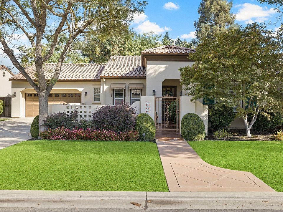 Gorgeous Rancho Santa Barbara! Welcome to one of NW Visalia's sought after Gated Communities! First time on the market is this well maintained 2 Bedroom 2 Bath home meeting the desires of 'today's' living. The open floor plan is perfect for modern living and hosting throughout the seasons. Fireplace and Mantle bookend with custom built-in cabinetry. The kitchen offers a lot of storage, large island with bar seating along with space for an eat-in kitchen overlooking the backyard. Off the entryway is a perfect Flex space that can be used as you desire - office space, formal dining room or potential 3rd bedroom. With privacy in mind, the Owner's Suite is large with an abundance of natural light equipped with Plantation Shutters. The ensuite bathroom boasts dual sink stations with a dedicated Make-Up station. The jetted bathtub is perfect after putting in a long days work. The Walk-In Closet has plenty of space waiting for its new owner! The separate bathroom and bedroom is located nicely in the front of the home with ample space for all! Don't let this home fool you in size, there is great storage space throughout. You will just have to decide if you want to relax on your front courtyard while enjoying a cup of coffee, or in your mature landscaped backyard while enjoying the peace and tranquility that Rancho Santa Barbara has to offer! Some of the great features are Plantation Shutters throughout the home, built-in surround sound in the living room and the mature landscaping sitting on just under a quarter acre lot. Truly a must see to appreciate the originality and all that it has to offer! Call to schedule your private showing today!