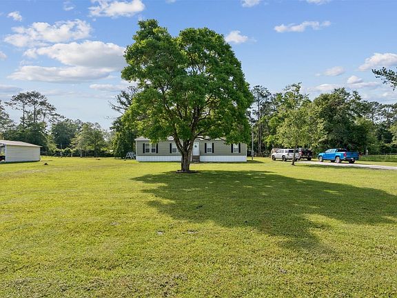 Move-in ready 4 bedroom/office, 2 bathroom partially furnished manufactured home built in 2019, situated on just over 1 acre in Callahan. This well-cared-for property offers 1,456 sq ft of living space with a split-bedroom floor plan for added privacy. The owner’s suite is located separately from the guest bedrooms and features a private en-suite bath. Recent upgrades include brand-new flooring in the kitchen, dining, and laundry rooms. The laundry room has a dedicated back entrance for added convenience. Outdoor features include an 18-ft round above-ground pool that is sand filtered and hard piped with an attached tiki bar—perfect for entertaining. The home sits at the front of the lot, allowing plenty of usable land behind for future use, recreation, or storage. Conveniently located a short drive from Jacksonville and Amelia Island, this property offers the peace of rural living with easy access to city amenities and beaches. Don't miss this opportunity—schedule your showing today!