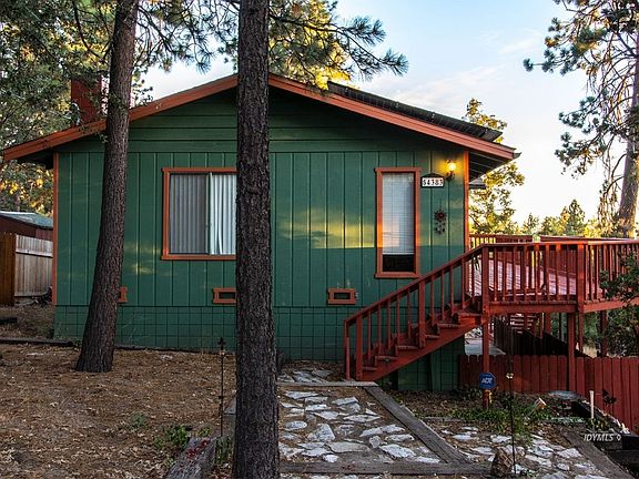 Enjoy mountain and valley views from the front deck. This home has a split 2 bed 2 bath floor plan, which features a tastefully remodeled kitchen and bath on the main level. On this upper level, there is also rock fireplace with a wood burning insert, built in shelves, separate dining space and open wood beam ceilings. The spiral staircase leads to a downstairs bedroom, bonus room, designer tiled shower, and covered concrete walkout. There are solar panels that will keep the energy costs low. This home is also within close proximity to many major hiking trails.