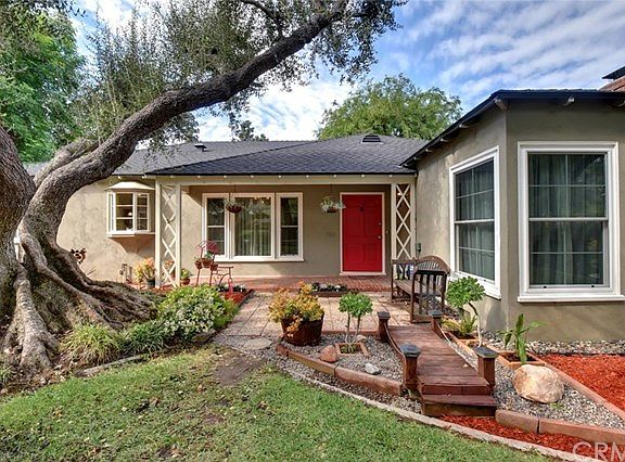 Truly exceptional home with the kind of appeal you just don't find everyday. This street has been recognized as the most beautiful street in Whittier and one look will make you a believer! The canopy of trees in front of the home, along with very little through traffic, creates a remarkable feel from the moment you turn the corner. You just don't get this in very many places...anywhere. Lush landscaping, green grass and a meandering brick path create a fairytale rich with character. As you walk past the brick porch and enter the home, you will be captured by the lovely original wood floors, trey ceiling in the dining room and the character of a home built in 1940. The large living room (complete with fireplace), spacious dining room and upgraded kitchen with room for everyone to hang out all contribute the livability of this home. Two of the bedrooms are unusually large and the full bathroom has been updated nicely with dual sinks and separate tub and shower. The back yard is yet another space where life just can't get any better! You will cherish times spent lounging in this lovely space. In fact, you need to know the trees create a cool environment both inside and outside the house where finding comfort is easy. The garage is accessed off the back alley and they have an electric gate waiting for you to help make it easy and provide the comfort you will appreciate. Lastly, be sure to check out the Art & Music Clubhouse! It is sure to be a favorite