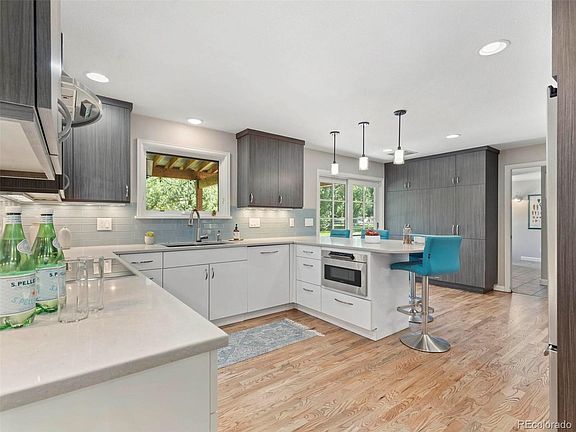 Price reduced $300,000!!! This home is on a classic street in Cherry Hills East - Oxford Avenue. The setting is sublime with neighbors walking their dogs, or running / biking to nearby trails on the Highline Canal. Families in the neighborhood enjoy Cherry Creek public schools such as Cherry Hills Village Elementary and Cherry Creek High School; and nearby private schools - Kent Denver and St Mary’s Academy. Homes on this street are generally larger than most in the area and you’ll love the expansive flat yard of this home where you can stretch your legs and kick the soccer ball or play lacrosse. Walk up the concrete stairs with built in lighting to the front door and front porch. The traditional floorplan has updates everywhere you look. Wood flooring covers most of the first and second level. The gourmet kitchen has been tastefully updated and features quartz counter tops, glass tile backsplash, 2 tone European cabinets, stainless appliances, a secondary sink and beverage refrigerator. There is a main floor office with built-in cabinets for those who work from home. The second story features 5 bedrooms including a primary suite with a spacious walk-in closet and stunning primary bathroom. Lastly, you’ll love the refinished garden level basement with wet bar, bedroom, bathroom, and storage. There are so many notable features including a massive covered patio, outdoor kitchen, new driveway, new front landscaping, 7 year old roof, crown molding, refinished wood flooring, built in Sonos speakers, updated laundry room, oversized 2 car garage with epoxy flooring, and much more.