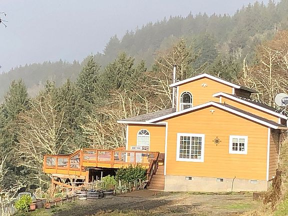 Private Custom home with “fantastic ocean views” on 18.3 acres! Large trex deck. A new 450 sqft permitted kitchen edition. Remodeled bathrooms! Not to mention A 56 gal per minute well. 2 natural springs and streams that run all year round through the property. A Large Wood burning furnace, that heats the garage. Along with a wood burning stove that heats the house. This home also comes with a new 13k propane generator and 500 gallon tank. Also did I mention A 900 sqft R.V./Shop Garage! And a 200 sqft studio. The lower 13 acres are rolling to flat with 2 streams running through it, with great ocean views! Will pay 3 percent to buyers agent!