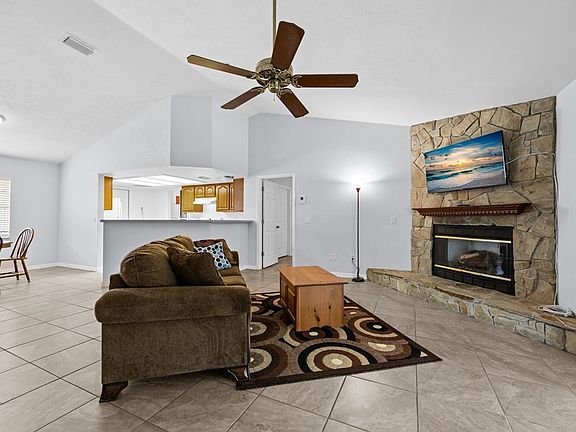 Nestled in an incredible location for outdoor enthusiasts is this updated 3-bed/2-bath concrete block home on a picturesque 1-acre setting in Spring Ridge, a much sought-after High Springs neighborhood! Noteworthy features that today's buyers are looking for include a new roof, fresh exterior paint, fresh interior paint, double pane windows, Florida Room, and no HOA fee! There's even an additional 2-car garage with power behind the home! While the fenced property has a rural feel, you will step into modern living with a spacious open living room, dining area and large kitchen, creating an inviting space to gather with friends and family. The living room has a gorgeous floor-to-ceiling stone fireplace and vaulted ceiling. Off the kitchen is the indoor laundry room with washer and dryer that stay. Easy-care tile flooring and new light fixtures can be found throughout. The 1,760 sq. ft. home offers a split bedroom plan with two sizable guest bedrooms and a full updated guest bath with tub/shower combo to the right of the foyer. Off the living room to the left is the primary suite with walk-in closet and updated ensuite bath with walk-in shower. French doors off the living room lead to the beautiful Florida room with air conditioning, a delightful room for relaxing or entertaining while watching spectacular sunsets. To the right of the Florida room is a lovely outdoor deck and to the left is a concrete patio, providing options for outdoor enjoyment. The yard is huge and even with the extra 2-car garage and tool shed, would provide ample space for a pool project. Located in Gilchrist County where taxes are lower, the home is just minutes to gorgeous natural springs, parks and rivers. Enjoy the convenience of driving just 7 miles to downtown High Springs with its artisan boutiques, antique stores, and wonderful restaurants. It's an easy commute to US-441 and I-75 with Gainesville about 30 miles southeast. Schedule your private showing, pack your snorkel or kayak, and be sure to leave extra time to enjoy the natural wonders of this area!