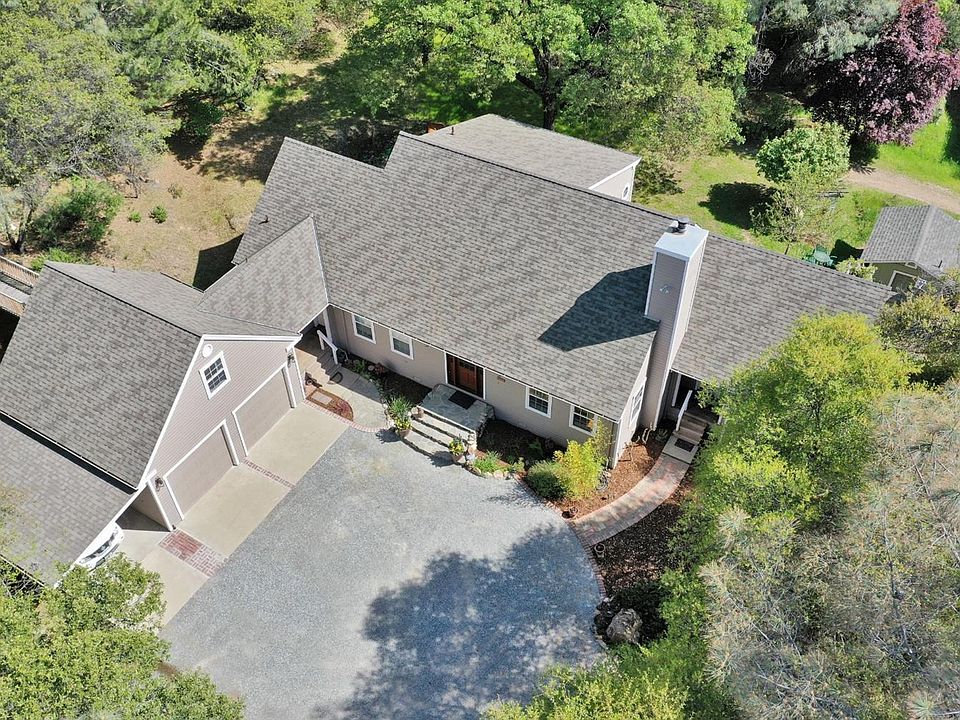 PRIVATE COUNTRY ESTATE WITH SEPARATE GUEST HOUSE, STUDIO APARTMENT, AND 960 SQ. FT. WORKSHOP. Perfect for multi-generational living. Situated on a gorgeous 15.91 acre parcel with a year round pond, this beautiful home welcomes you with a traditional open floor plan and is very nicely appointed with tasteful upgrades. Four bedrooms with the Master on the main level along with a newly remodeled kitchen, spacious family room, formal living room with gorgeous hearth and cozy wood stove, and a bonus room and guest bath. Upstairs you will find two more bedrooms and a full bath. Covered deck, large uncovered deck, patio, fenced orchard, new roof, new interior and exterior paint, solid wood flooring, etc. Live in the Desirable Oak Hill Agricultural District within 10 minutes to downtown Placerville, Missouri Flat Road, shopping, hospital, commute, etc.