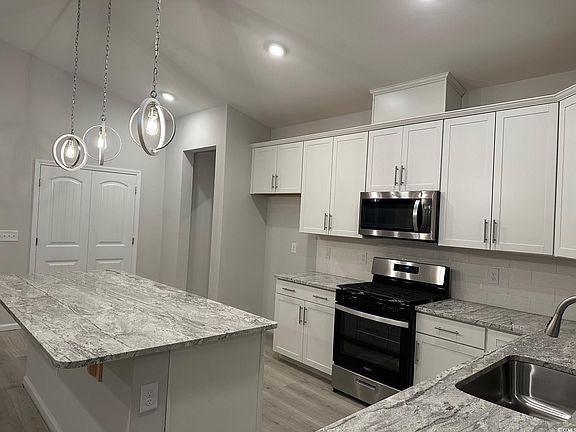 May Completion Date. This ever-popular Georgetown home features 3 bedrooms, 2 baths. The marvelous kitchen boasts 42" crisp white cabinets, Kempton Park Granite countertops, Whirlpool Stainless Steel Kitchen appliances (natural gas range, over the range microwave vented outside, dishwasher), Level 2 Mythology 4x12 undulated tile backsplash, and Progress Lighting pendant lights over the Island. The kitchen Island is a fabulous open space for meal prep, dining, buffet style entertaining, baking, and more. The foyer is bathed in natural light from the transom window over the front door. The Great room is open to the dining room and kitchen. Both baths feature Simply White quartz counter tops. The primary bath boasts a 5ft walk in tile shower and double bowl vanity. Level 2 Mohawk REV Wood laminate flooring is included in the living areas. 100% Energy Star Certified and EPA Indoor AirPlus Qualified with the complete Tyvek house wrap system, spray foam insulation, which means improved energy efficiency and indoor air quality to give you a healthier, and more comfortable home with less pests, less moisture, less air loss, and a lower utility cost. Amenities include a premier location (2 miles to the shopping and dining venues in Carolina Forest, 6 miles to the beach, 7 miles to Market Common, and minutes to Highway 31), a community pool and clubhouse with a catering kitchen, gathering hall, and exercise room. DISCLOSURE: Photos are of the Georgetown decorated model home and a previously sold Georgetown. Features will vary.