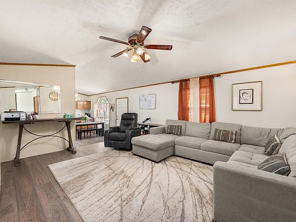 No lot rent! A home of your own. Welcome to this clean and cozy home that offers comfort, convenience, and value, all on its own land and recorded as real property. Inside, you’ll find an open and spacious kitchen that flows into living room, offering an open concept feel. This home has updated flooring throughout the kitchen, living room, and hallway, giving the space a fresh, modern feel. The home is neat and well-maintained, making it truly move-in ready. Enjoy peaceful mornings or evenings on the large shaded patio, perfect for relaxing or entertaining. A 10x12 shed provides additional storage or workspace. This property also offers a fenced in grass area that wraps around the property. So, If you're looking for a tidy, inviting home in a great location, this is it!