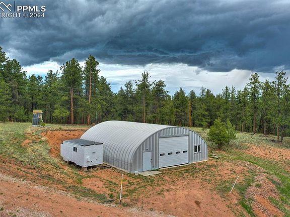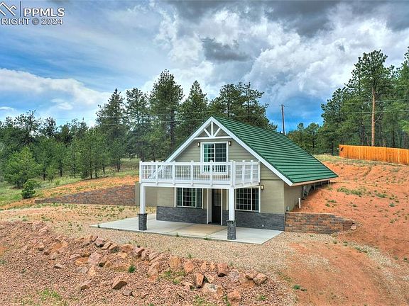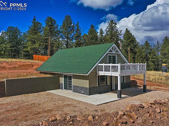 Wow, wait til you see this custom masterpiece with construction upgrades to ensure safety & durability, lower utilities & maximize your comfort. Beautifully enhanced with high end finishes including porcelain tile floors, large windows for enjoying mountain views from the living room, a 60 sq ft quartzite island with granite & marble counters & backsplash in kitchen and dining/great room area. Main level primary bedroom has an ensuite bathroom featuring a heated floor wet room, custom hardware, granite counters and a top-of-the-line Kohler bidet system. Laundry and mechanical on the main level. Upstairs you will find 2 generous bedrooms, one with a balcony graced with views of Pikes Peak, and a spacious full bath. Quality built to last using the latest building science to prevent mold & control inside temperature. R-60 roof insulation using closed cell spray foam, R-40 walls & R-30 under radiant heated slab on main level. Main level exterior walls are 8” concrete; upstairs exterior has fireproof James Hardie cement board lap siding with a drainage plane behind. All exterior walls are insulated with 8” foam board and 4” stud walls filled with Rockwool batts that will not burn or mold. Roof has battens & counter battens, providing an air gap under Decra 50 year steel shingles, made in the USA. Heat recovery ventilation for fresh air in cold weather; in the summer, the upstairs is naturally cooled using a ground source cooling system. Each room independently climate controlled. Energy efficient, quiet, natural gas fueled, hot water in-floor heat & instant hot water to the fixtures. Andersen series 100 Fibrex dual glass low-E windows flashed with Typar flexible waterproof flashing. Tinker away in your 2000 sq ft detached garage/workshop with power & roughed-in bathroom. Abundant wildlife visits daily at this scenic & quiet acreage which has been mitigated well away from the house for wildland fire safety. Nothing to do here but move in & enjoy the mountains!