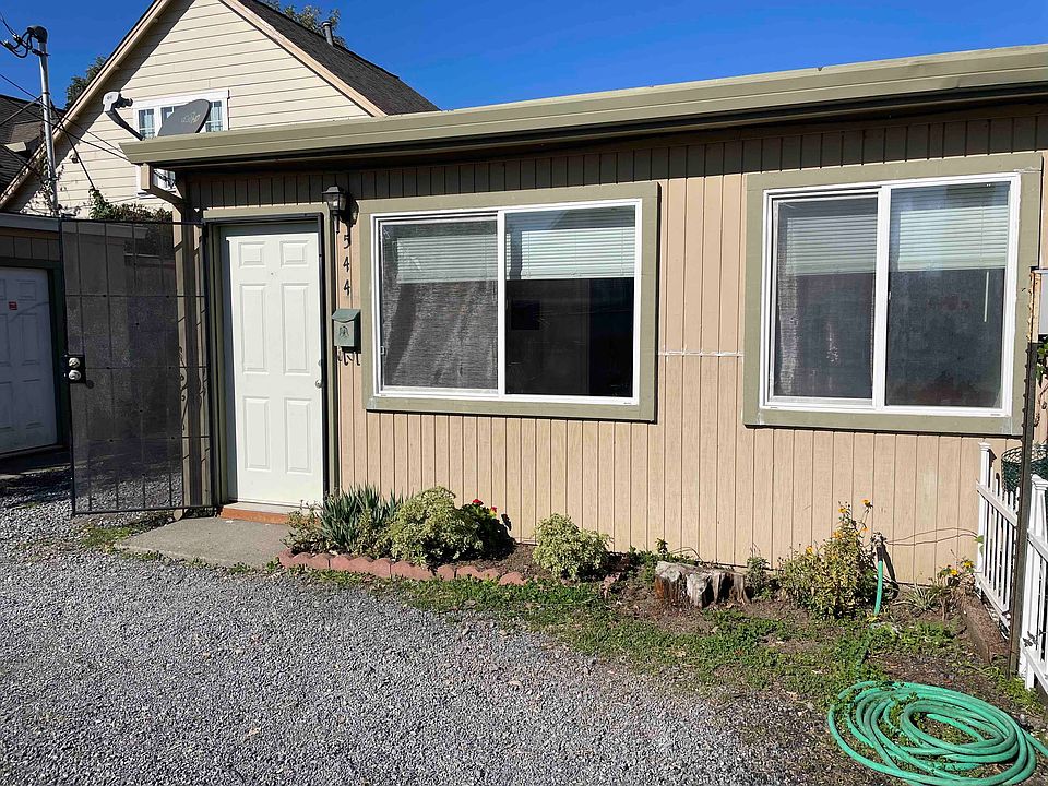 One bedroom apartment with lots of light and a cottage-like feel. One of seven units on large lot with garden. Newly renovated with fresh paint. Parking off-street. Landlord provides water, sewer, and trash removal. Located close to Downtown and the Historic Railroad District. Owner pays for water. Renter is responsible gas and electric. Deposit is one month's rent. Lots of open space.