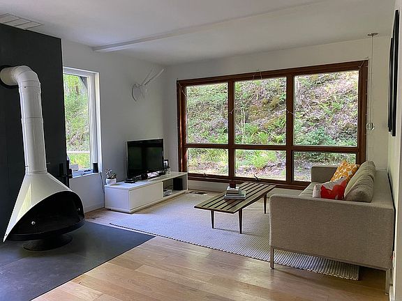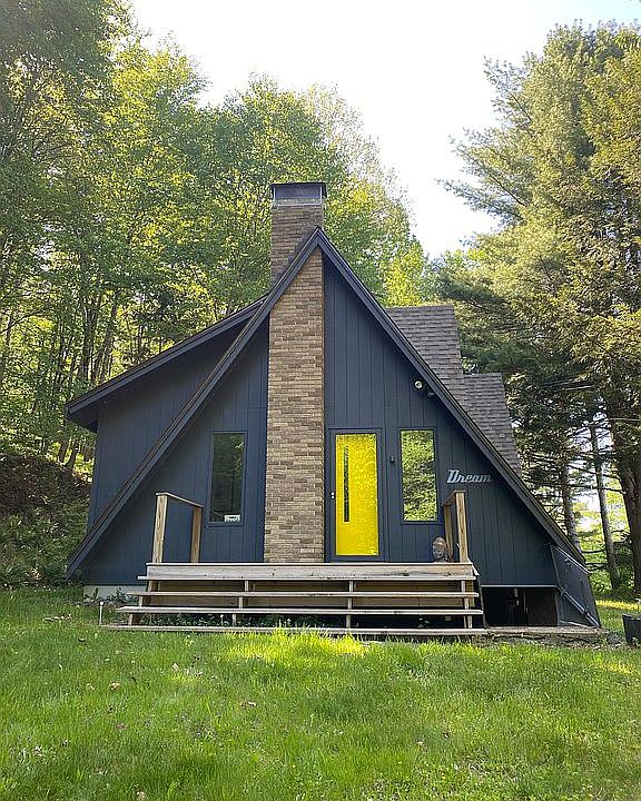 Beautiful mid century 2 bedroom, 1 bath A-Frame home on 5 acres surrounded by trees for privacy.