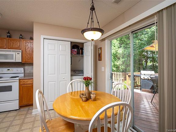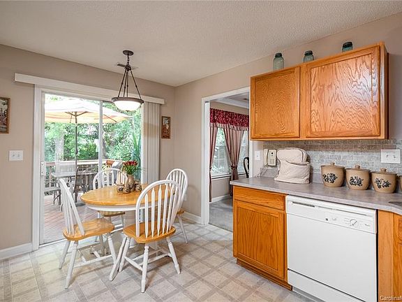 This 3 bed 2.5 bath is the perfect starter home. Kitchen with all white appliances, oak wood cabinets, vinyl floors, and an eat-in breakfast area. Slider to back deck with a step-down, stamped concrete patio. Dining area with a large window for plenty of natural light. Living room with gas fireplace and mantle. Half bath. Upper level with 3 beds and 2 baths, including a master suite which is equipped with a walk-in closet and a master bath with a large vanity, a soaking tub, and vinyl flooring. Entertain inside or out and enjoy the private views. This home is convenienently located just outside of downtown Clover and is ready for its next owner!