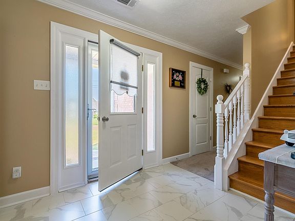 Welcome home to Carrington Estates! Wonderful, 4 bed 2 bath home w/ bonus room or 4th bed is move in ready! Featuring a spacious eat in kitchen, separate dining room & a cozy living room w/ gas logs. 3 bedrooms & laundry room are conveniently located on the first floor. Walk out onto the screened in patio & relax in your private backyard. Large 2 car garage & a 12x8 storage room. NEW HVAC! All new vinyl efficiency windows w/ transferable warranty. Insulated garage door & NEW motor.