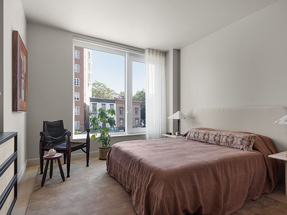 Amenities at 544 Carroll are designed for seamless indoor-outdoor living, with greenery woven throughout the building. From the moment you enter the lobby, you're welcomed by a sun-filled glass wall overlooking a lushly planted courtyardan energizing view shared by the adjacent resident study, perfect for working from home. The fitness and Pilates Studio opens onto both private and shared gardens, and residents can unwind on the sunset terrace or dine al fresco on the rooftop, all while taking in sweeping views of Park Slope and the Manhattan skyline. For younger residents, the nature theme continues with a full-scale, museum-inspired "cave" play space, complete with plush rock formations, faux grass, and moody lightingdesigned to spark imagination, curiosity, and wonder. Additional features include a resident lounge, private dining room, pet spa, bike storage with individual cages, parking, and 24-hour concierge services, all managed by a live-in resident manager