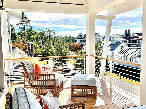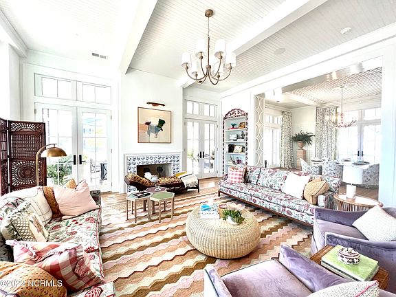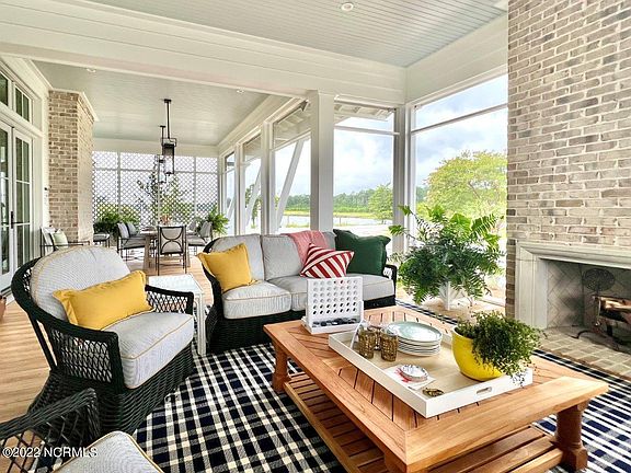 Escape to Coastal Carolina where the striking blend of old-world charm and modern touches give the feel of a luxurious retreat in Southern Living's 2022 Idea House. Every space is filled with crisp clear light from the many windows and glass doors. Between the main house, carriage house and the art studio there are 5 bedrooms and 5.5 baths. The great room has built in shelves and a lovely fireplace with a decorative tile surround and access to the screened porch area. The dining room offers French doors leading onto the spacious outdoor living area with fireplace. The kitchen, with its luxurious marble countertops and tile backsplash, features a center island with butcher block countertops, integrated Monogram appliances with custom panels, brass vent hood, and a 6-burner gas stovetop. The laundry/back kitchen has a washer and dryer, as well as a glass front Wine Sommelier, ice maker and a dishwasher. The bar just off the kitchen has cabinets for storage, a bar sink, and wine reserve. The downstairs bedroom has a vaulted ceiling and a window seat, as well as a full bath with walk-in shower. Upstairs, the Primary Suite has access to the second-floor porch, a vanity area with refrigerated drawers and a large walk-in closet. In the spa-like Primary En Suite, the two separate hand painted vanities with marble tops frame the freestanding bathtub and showcase the large glass and tile shower. The Family Retreat is a light and airy space that is the perfect spot to relax and unwind together. The upstairs guest bedroom has plenty of space and a full bath. Out back there are two separate spaces – a carriage house with a bedroom and bath above and a breathtaking art studio/bedroom with a large window seat and a full bath. The buildings are surrounded with mature landscaping and offer even more space for entertaining or relaxing. This great escape is in the award-winning community of River Dunes in Oriental, NC. Co-listed with River Dunes Realty, Inc.