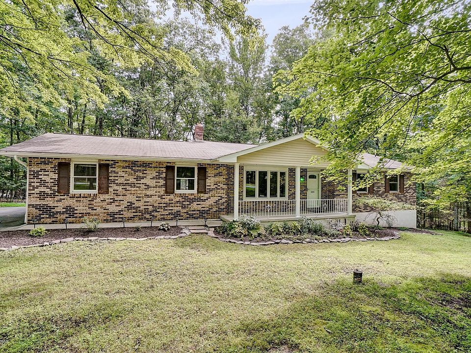 MULTIPLE OFFERS RECEIVED - Kindly submit highest and best offers in writing no later than Wednesday 8/19 at 5 PM! Move In Ready Ranch on an acre corner lot in quiet and convenient Reeders neighborhood! Less than 90 miles to NYC and just moments to Route 80 at Tannersville, Camelback Mountain Resort, shopping & dining, this picture perfect brick-front home is ready for you! Enter from covered porch into vaulted living space with refinished hardwood floors throughout - zero carpet! Prep meals in stunning kitchen before relaxing or entertaining on spacious deck overlooking wooded yard. Nothing to do - both full bathrooms are updated too! Plenty of fresh paint and replacement windows throughout. Full walk-out basement, two-car garage and paved driveway. Taxes at $3,155/yr and no dues!