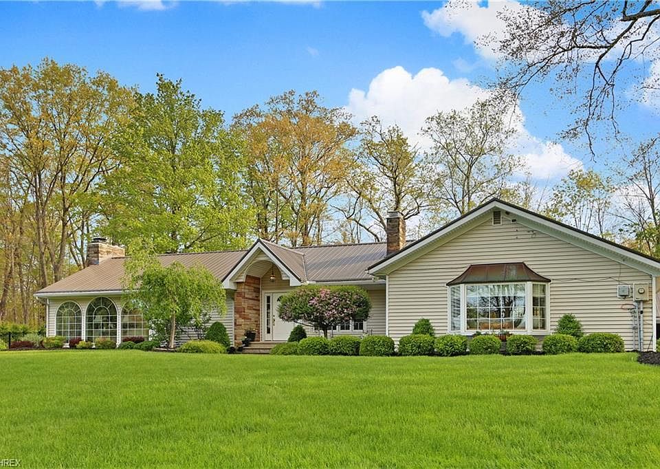 Beautifully updated ranch style home in desirable location on red brick road in North Chagrin. Current owner has completed many upgrades to home including a brand new kitchen/hearth room/dining room. This home exudes a cozy yet sophisticated vibe with comfortable living spaces throughout. Large family room at one end of house can be used as additional family room, art studio, yoga studio, home office space. Piano room can be used as-is or as formal living or dining room. Follow the New York apartment style hall to access four bedrooms, one with ensuite full bath. Master has private bath and access through sliders to outdoors. Kitchen has all upgrades including walk in pantry with barn door. Exposed beams on ceiling. Laundry room has hall access as well as outdoor/pool access. Lower level offers complete living space made up of fifth bedroom, kitchenette, built in bed and full bath. Egress windows. Outdoors are multiple patio areas surrounding in ground fenced in pool with views of terrific acreage. Many new windows throughout house, new roof, renovated family room. All in award winning Chagrin Falls school district.
