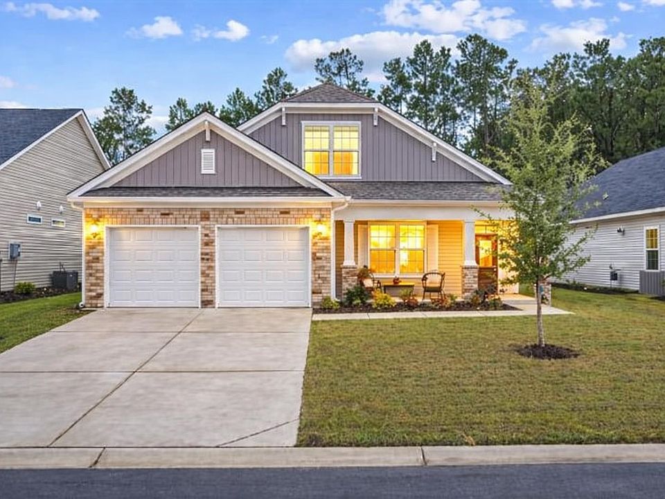 NEW PRICE - UPGRADES - INCREDIBLE VALUE!! Welcome to a residence where refined design, modern comfort, and effortless sophistication come together nestled within one of the Grand Strand’s most coveted communities. This elegantly appointed 3-bedroom, 2.5-bath home with a versatile bonus room offers the perfect harmony of luxury and livability. From the moment you step onto the charming front porch, you’ll sense the attention to detail and timeless style that defines this home. Inside, an inviting foyer opens to a flexible space—ideal for a formal dining room, executive office, or serene study. The main living area showcases exquisite architectural ceiling beams, expansive windows that bathe the room in natural light, and a stunning gas fireplace that anchors the space with warmth and sophistication. At the heart of the home, the gourmet kitchen impresses with an oversized quartz island, designer tile backsplash, five-burner gas cooktop, built-in wall oven and microwave, and a spacious breakfast area overlooking the private backyard. Whether entertaining guests or preparing a quiet family dinner, this space combines beauty, function, and effortless flow. The first-floor primary suite is thoughtfully designed as a serene private retreat, complete with a spa-style tiled shower, dual vanities, a generous walk-in closet, and a Safe-Step walk-in tub—easily removable at the seller’s expense for buyers who prefer a traditional layout. Luxury vinyl plank flooring flows seamlessly throughout the main level, blending sophistication with low-maintenance living, while custom tile accents in every bathroom provide a polished, enduring aesthetic. Upstairs, two additional bedrooms, a full bath, and a cozy loft offer flexible living—perfect for a media room, playroom, or guest retreat. Ample attic storage ensures practicality matches the home’s polished design. Outdoors, your personal oasis awaits. The screened-in porch, featuring a second gas fireplace, invites year-round enjoyment, while the paved patio provides the perfect setting for evening gatherings under the stars. A fully fenced backyard offers space for pets or play, enhanced by an in-ground sprinkler system and a serene, wooded backdrop for added privacy. Additional highlights include a two-car garage, custom window treatments by Budget Blinds, wood-tread stairs, upgraded lighting, and a whole-house Generac generator—ensuring comfort and peace of mind in every season. Energy-efficient upgrades such as a 15-SEER HVAC system and R-38 insulation deliver sustainability without compromise. Located just minutes from premier dining, boutique shopping, championship golf, and the area’s best beaches, this home offers a lifestyle of convenience and distinction. With Highway 31 nearby, you’ll enjoy seamless access to all the Grand Strand has to offer—from North Myrtle Beach to Murrells Inlet and beyond. This is more than a home—it’s a refined sanctuary designed for those who appreciate quality, privacy, and style. Schedule your private showing today and experience luxury coastal living at its finest.