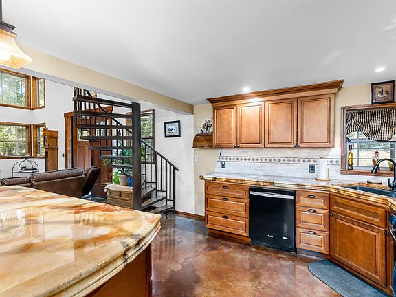 This BEAUTIFUL home has so many Unique features. The 33x33 garage/shop has heated floors and a half bath. The home sits on just over 15 and a half wooded acres, a hunters paradise. This 3 bedroom 3 bath home has multiple features, Gorgeous concrete floors, heated! High Gloss concrete counter tops. Wood burning outdoor furnace. Walk out deck with a place to install a Hot tub. The deck has a built in mini frig. and a perfect place to entertain. A breezeway between home and garage/shop and access to deck. On the side of home is a built in 12x12 storm shelter. This home is built with commercial grade material and is very well insulated. Constructed with steel beams and the metal roof making for very little maintenance. The spiral staircase takes you to the additional family/game room, big enough for a living area and a pool table! Also, 2 bedrooms and a full bath upstairs, perfect for guests or kids. The master bath is downstairs and has double doors to deck. Large jetted tub with scenic window. Located just outside Ozark and approximately 20 miles to Springfield or Branson. So many additional added features , call today for a private tour. 2022-01-14