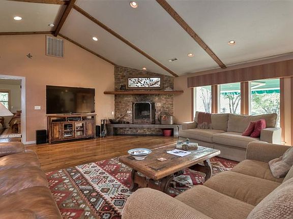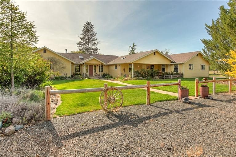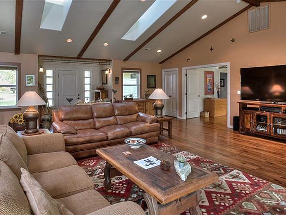 You won't want to leave once you've visited this private, 40 acre property with everything a horse lover or a mini rancher would want or need! Close in country at its best! Gracious Southwestern style home with over 2800 square feet, large wood burning stone fireplace, soaring vaulted ceilings, European chestnut floors, open, split-bedroom floor plan, hobby room, mud/utility room, 3 bedroom, 2 bath, oversized 2 car attached garage. Barn with stalls and tack room, large open air arena, riding paths that wander through the beautifully treed property, fenced pastures and deer fenced garden area. Fire ring, hot tub, large shop with workbenches, dog run, chicken coop, compost bin and more! Gorgeous landscaped yard with sprinkler system, covered patio and deck and outstanding Table Rock vistas. Don't miss this one.