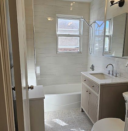 Welcome Home! - Beautiful large (2) two bedrooms (1) one full bath, with parking for one (1) car. Updates consist of a new eat in kitchen, w/ quartz counter tops, back splash, microwave, stainless steel appliances. gorgeous floors, and fresh paint throughout, new bathroom, plumbing, and electrical. Additional storage included in the basement.