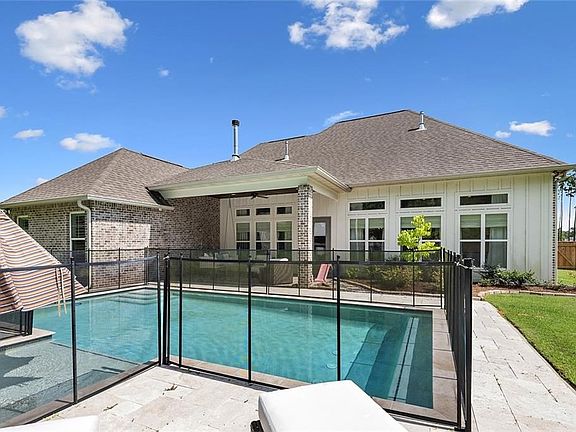 THIS ONE WILL TAKE YOUR BREATH AWAY! 5 BR / 3 Full Baths in gated Coquille - wide open floorplan, soaring ceilings w/ exposed reclaimed Heart of Pine beams, plantation shutters, custom window treatments, wood floors in living areas & Primary BR, shiplap above mantel, Kit w/custom cabinets, granite, LG island & SS appliances; spacious Primary Ensuite w/ lavish Bath; Water Filtration System, INGROUND HEATED POOL w/ both NATURE 2 & UV Fiiltration Systems; & glorious landscaping w/ irrigation. Flood Zone C.