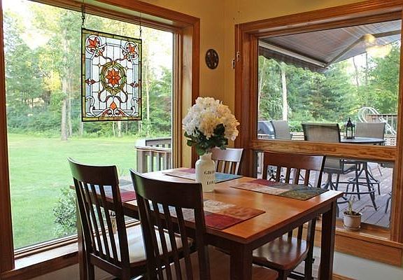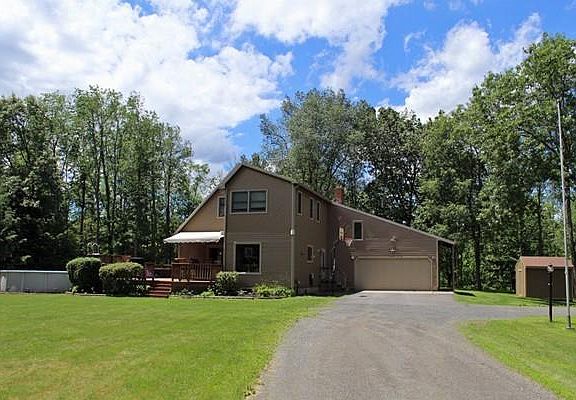 If you are looking for well designed home with privacy, you will want to see this classy Contemporary set back from the road, very private in a park like setting. Wonderful floor plan that includes a well appointed kitchen with a center island and dining area surrounded by windows to enjoy the peaceful view. Living room with two sliders that open on to the wrap around deck. Den and office with views of the back yard. First floor laundry and half bath. Spacious Master bedroom full of windows, walk in closet and it's own bath. Balcony overlooking the living room with skylights. Two additional bedrooms, bath and a large bonus room with skylights and lots of closets that would make a terrific bedroom. Full basement, oversized two car garage, attached storage room and an large shed. Truly a remarkable property.