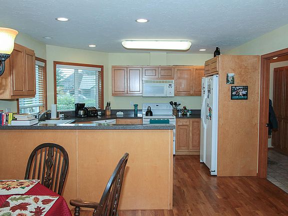 Comfortable single story home with 3Bd/2Ba; oak floors in front of home carpet in bedrooms, vinyl in baths. Pellet stove in living room; finished 2 car attached garage. Fenced dog run in back of house. Both front & back decks are treks. End of road location makes this a very private setting. Home was built in 2004.