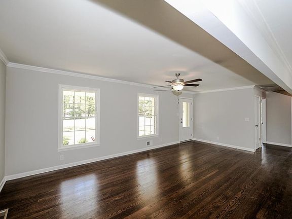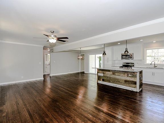 Charming renovated brick home in established neighborhood! Gorgeous original refinished hardwood floors throughout. Stunning new kitchen w/ white cabinets & light speckled granite! Kitchen has SS appliances & view to family room. Island has granite & bar seating! Large laundry area w/ new tile. Tons of natural light! Dining room has glass doors that lead out to patio perfect for entertaining! Master bedroom has own private bath & entrance to patio. Secondary bedrooms perfect for office, kids, or nursery! Southern living w/ rocking chair front porch! Fantastic backyard!