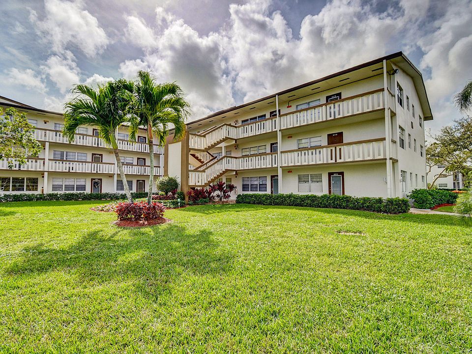 You'll experience convenience and charm in this lovely Century Village condo. Open-concept floorplan offers a variety of design options and a light, bright space. Lovely kitchen with vaulted ceilings and ample cabinet space for maximum efficiency. Well-maintained and ready for you to move right in. Large owner's suite features double closets and en suite bath. Spacious screened balcony offers views across the expansive manicured grounds. Here you'll find a perfect spot for your morning cup of coffee or for a cozy reading nook. Enjoy a long list of great Century Village amenities, from the clubhouse fitness center to the performance theater. The amenities continue outside with 12 tennis courts, 12 shuffleboard and bocce ball courts, and an outdoor pool perfect for escaping the Florida heat.