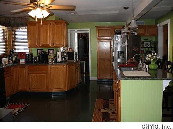 COMFY AND COZY . . . with a whole lot of class! This charming Clayton village home has an open layout with a large remodeled kitchen that has granite countertops and island with breakfast bar. A cheery woodstove in the kitchen keeps winter days at bay! Formal dining area opens up to a sunny Florida room and cozy living area. There is a spacious master bedroom and office on first level. Upstairs has a large landing area and two additional bedrooms. Recently this home has undergone some major changes including new roof, deck, siding, and carpeting. Inviting home for discriminate buyer!