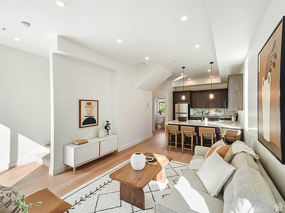 Modern Urban Vibes Meet Capitol Views! Welcome to 544 N 600 W - a BRAND NEW, END UNIT townhouse where modern design meets city convenience in this quaint 5 unit complex. Just minutes from the Marmalade district, Utah State Capitol, downtown restaurants, and Salt Lake's vibrant nightlife, this home puts you right in the pulse of urban living. Step inside to SOARING 10-foot plus CEILINGS, lots of WINDOWS, and NATURAL LIGHT pouring into every corner. The open-concept main floor features stylish laminate floors, a chef's kitchen with sleek quartz countertops, gorgeous modern cabinets, and all appliances included - just move in and start living. Upstairs, you'll find 2 spacious bedrooms and 2 modern baths, perfect for roommates, guests, or a home office. Enjoy a view of the Capitol dome from your window - a daily reminder you're living right in the heart of it all. With a one car garage and plenty of off-street parking, this quiet location is perfect for downtown living! Want an investment property? Rentals allowed. Square footage figures are provided as a courtesy estimate only and were obtained from appraisal. Buyer is advised to obtain an independent measurement and verify all.