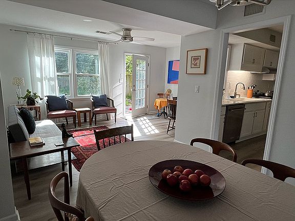 Completely renovated townhouse, walking distance from downtown, with Tiger Transit bus stop steps away. Beautiful neighborhood with no HOA fees. Three bedrooms, 2.5 bathrooms and large living area that opens up into sun room and breakfast nook, perfect for entertaining. Ample storage space--each bedroom is equipped with walk-in closet. Main bedroom has en suite bathroom with linen closet. In addition, there is a large utility room, hallway closet and newly rebuilt tool shed. All new flooring in LVP throughout the house, except for two bathrooms with tile floors. Staircase is in hand-painted oak. New windows, front and back doors, ceiling fans, light fixtures, fenced backyard with new privacy fence and porch lights. Brand new Kitchen has white cabinets and subway tile, stainless steel appliances and light fixtures and granite countertop. Brand new AC unit and furnace. Electrical system has been updated and extra insulation in the attic reduces energy bills. Townhouse is sold fully furnished, including artwork--it is ready to move in or rent out.