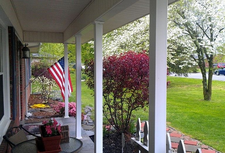 - EXTERIOR FEATURES: Garden Area, Covered Front Porch, Patio, Paved Drive, Fence