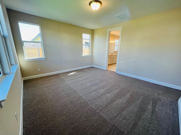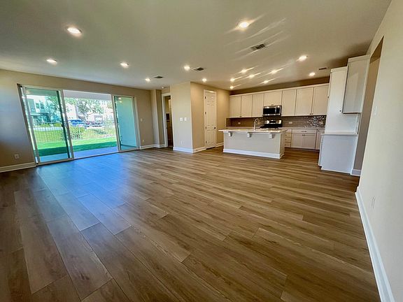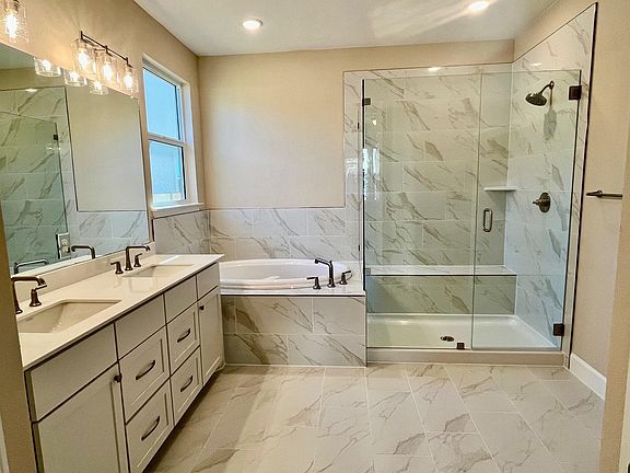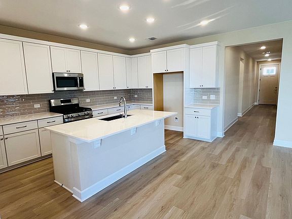 This thoughtfully designed home opens with two bedrooms flanking a full hall bath. Beyond the entry, you’ll find an open layout with a dining nook, a great room with access to an inviting covered patio, and a kitchen with a center island, walk-in pantry and abundant cabinetry. The primary suite is nearby, offering a generous walk-in closet and a private bath with double sinks, a shower and a separate soaking tub. A laundry room, a fourth bedroom with an attached bath, and a convenient 2-car garage are also included.