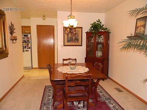 One of few Ranch-style homes w/walk-out bsmt in Berthoud. Orig owner enjoys this 5bdrm/3ba home w/tons of storage & custom touches. Main floor master & laundry, lg kitchen w/pantry & oak cabs built by Tharp. Eat-in kitchen features bay w/patio doors that walk-out to upper-level deck w/awning. Master has 5-pc bath & walk-in closet. Bsmt permitted & fin 10 yrs ago features family/rec room w/recessed lights. Newer roof & ext paint. Landscaped yard w/auto sprinkler & mature Ash trees.