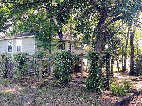 WATER FRONT HOME on Lake Livingston, just under 1 acre. Great lake views, New DOCK, New COVERED BOAT LIFT, parking for two jet skis. HUGE YARD with mature trees, arbor at entrance to home. This home has 2 bedrooms, 1 bath includes washer, dryer, refrigerator. Laminate flooring in main areas. Wonderful deck with amazing views. If you have ever wanted a Lake House this may be the place for you! Shown by appointment. No flooding per seller.