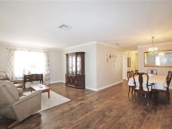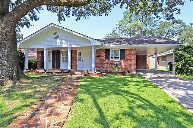 Spacious Harahan 2 bedroom 2 bath home with great curb appeal! This home features expansive areas for family gatherings (or space that could be a third bedroom). Large primary suite w/Walk in closet. Luxury vinyl in the living room, dining room, den & bedrooms. No carpet! Big yard w/Large covered patio! Eat in kitchen. Laundry room w/ washer, dryer & extra fridge. Recent updates include: A/C & Heat 3 yrs, Roof 3 yrs, gutters 1 yr, water heater 5 yrs & most flooring 4 yrs. Covered carport. X flood zone.