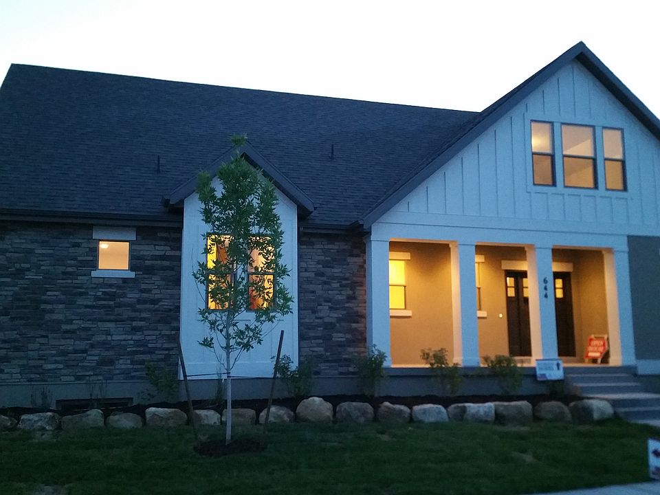 Kiss your lawn mower good by! New listing! just finished and brand new. Move in today. Come see our new model home in Harvest Park, it's also available for sale. Master on the main, main floor living, maintenance free yard. Over size great room, granite through out, hardwood floors, 3 large bedrooms, 2,5 baths, office or den, room to grow in the basement. Over 4322 s.f. fully landscaped, trex deck, gas range, 96% furnace, dual zone heating, fireplace and more. 544 S. golden Leaf Dr. Mapleton. Built by Summit Construction. Just $359,900 MLS# 13150732526