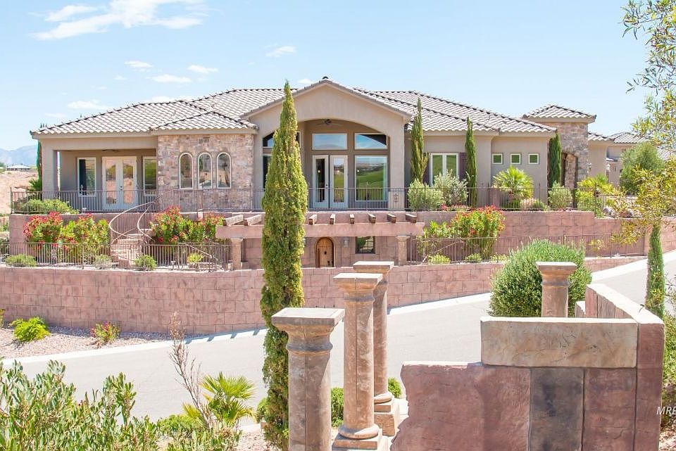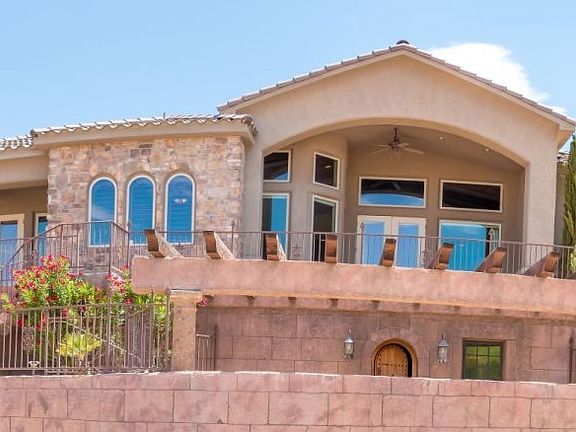2 Bedroom with a Den. 3 1/2 baths. Beautiful Craftsmanship in this Tuscan Villa with vaulted ceiling and wood beams, hardwood floors and windows from floor to ceiling. Views of the Golf Course. Custom Cabinet built-ins throughout this beautiful home. Professional Gourmet Kitchen with upgraded WOLF appliances, 6 burner with griddle propane stove, beautiful large cabinet style hood, built in Refrigerator with cabinet panels, WOLF Oven and WOLF Convection/Microwave, ASKO dishwasher. Large walk in Pantry plumbed for ice maker - WINE CELLAR - yes a climate controlled room for 100's of bottles of wine. Game room and courtyard in lower area, perfect for entertaining. Cooling misters on the Patios. Spacious carpeted bedrooms each with a full bath en-suite. MB shower offers rain shower along with two additional shower heads and STEAM shower. Den has a Murphy bed and can double as a guest room. Central Vac -2 x 6 construction - Plantation Shutters throughout - Over $170,000 worth of Upgrade. Lot next door is available for $85,000 if you are interested in combining the two lots for extra garages and beautiful pool oasis, pool, spa, fire pit, etc VIEWS!