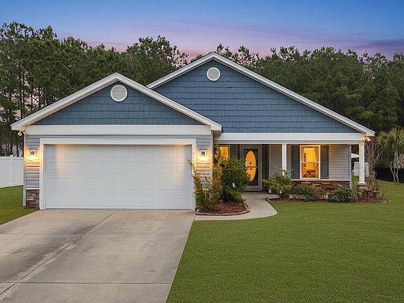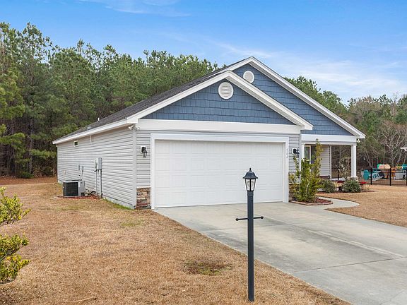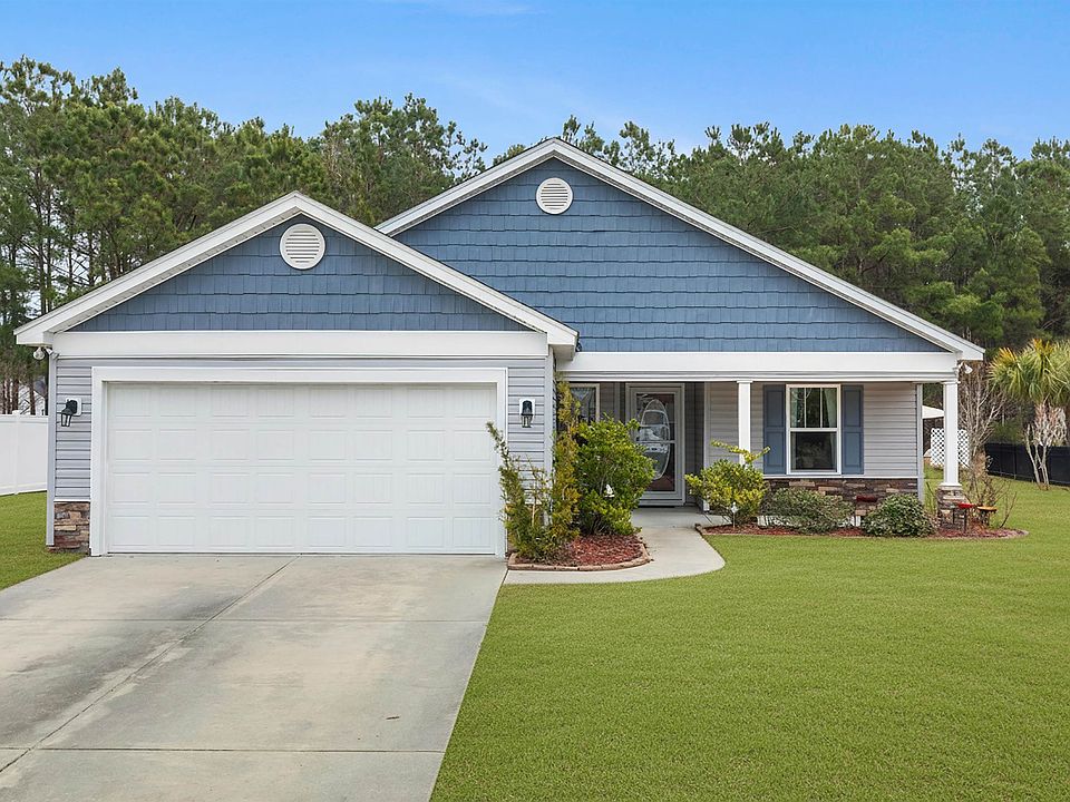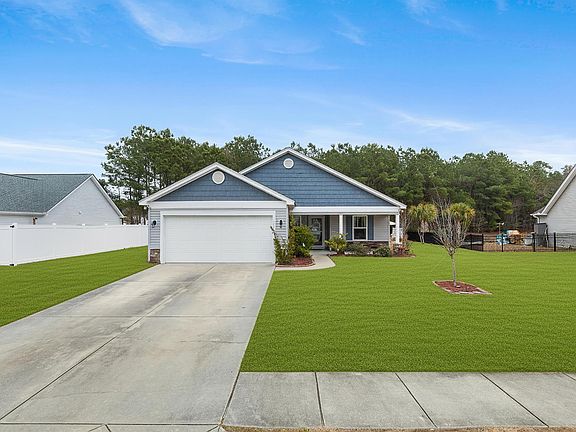 This beautifully updated 3-bedroom, 2-bath home sits on a nice wooded lot at just under a quarter acre. Located in the desirable Diamond community this home offers the perfect blend of comfort, style, and privacy. From the moment you arrive, the charming front porch sets the tone, ideal for morning coffee or evening relaxation. Step inside to a spacious, open-concept floor plan highlighted by vaulted ceilings in both the living and dining areas, creating an airy and welcoming atmosphere. The single-story, split-bedroom layout provides exceptional functionality and privacy. Brand-new wide-plank luxury vinyl plank flooring has just been installed throughout the entire home, adding a modern, cohesive look. The kitchen is a true centerpiece, offering abundant cabinet and counter space, stainless steel appliances, tile flooring, a tray ceiling with dual ceiling fans, a pantry, and a generous breakfast bar, perfect for casual dining or entertaining guests. The private owner's suite, thoughtfully positioned on the opposite side of the home, features a vaulted ceiling and patio doors that leads out to a newly built deck overlooking the serene wooded backyard, your own peaceful retreat. The en-suite bath impresses with dual vanity sinks, a walk-in shower, and a spacious walk-in closet. Located in the award-winning St. James School District, this home is just minutes from shopping, restaurants, and close to the entertainment at the Murrells Inlet MarshWalk, offering the best of both tranquility and convenience. Move-in ready, beautifully updated, and with a wooded lot that offers privacy, this home has it all! Square footage is deemed reliable, buyer responsible for verification.