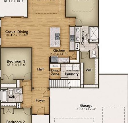 - Features: Tray Ceiling(s), Ceiling Fan(s), Linen Closet, Main Level Master, Walk-In Closet(s)