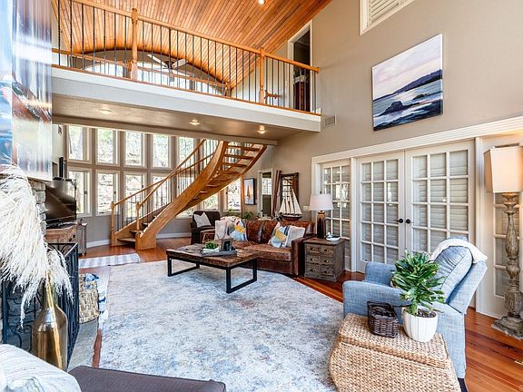 This home and its property (2 stunning boulder-filled lots) are an Eden Isle Masterpiece! Built in 1990, the foundation is not only overbuilt, but is also a work of art! Sitting in the middle of two large lots, this home features 4-bedrooms, 3.5 bathrooms, barrell (wooden) ceiling in living, a beautiful wooden staircase, lots of glass, wood floors, 2-story 2-sided stone fireplace, primary suite on the main level with very large walk-in rain shower, beautiful kitchen with granite tops, stainless built-in appliances, island with gas cooktop, icemaker and breakfast bar. Upstairs are 3 very spacious bedrooms and 2 full baths. 2-car garage, large front deck overlooking Greers Ferry Lake and a backyard that backs up to the 16th fairway of the Red Apple Championship Golf Course! The Red Apple Inn and Eden Isle Marina are just a short cart ride! An absolutely lovely property!