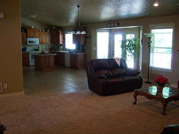Big trex deck plus covered patio, nicely landscaped yard with huge shed/shop make this home a joy for summer living. Two gas fireplaces, steam room, two family rooms, open floor plan, hobby room, sewing room make this home comfortable during those cooler months. Five bedrooms, three baths, large country kitchen makes it perfect for your family. Great home with many, many extras.