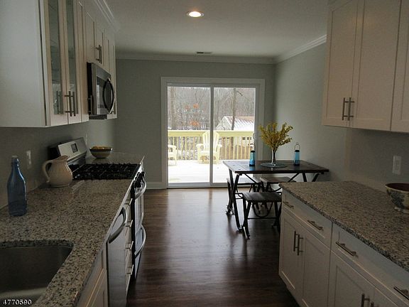 COMPLETE REMODEL! Open floor plan all NEW kitchen, bathrooms, hardwood floors, windows, doors, trim, deck, AC.Finished lower level w/out level back yard! Public water/sewer, opt beach clubMOVE RIGHT INTO THIS STYLISH PROPERTY. Gleaming hardwood flooring on main living level. Gourmet kitchen, granite counters, stainless appliances, glass dish cabinet, stainless sink w/window & pedant light. Open to eat-in w/walk-out to deck. wood foe vinyl flooring on lower level offers family rm, 4th bedroom & all new bath. Separate laundry rm. This home comes with public sewer and water and a 1 car built in garage with additional parking on driveway. Commuter location just 1/2 mile to rt 80 & NJ Transit 1 hour to NYC. Optional membership to Shore Hills Club. Walk to beach & playground located on Lake Hopatcong.
