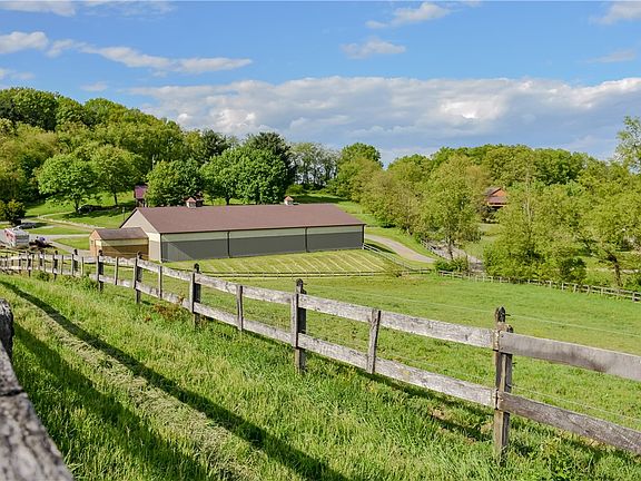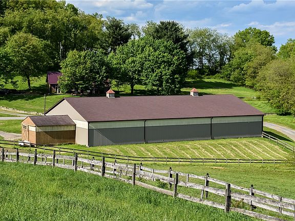 20 Stall Equestrian property 13.5 acres in Mars School District, Adams Twp. This exceptional horse facility offers expansive pastures of high quality grass. Main barn hosts rubber mats, wash stall, lounge & bathroom. The 70'X125' indoor arena has a clay base & sand/rubber footing. Guests can watch lessons in the indoor arena from the viewing room. Return extension to the indoor arena for horse entry. 120'X220' outdoor arena has a shale base with sand. Close to I-79 & Turnpike I-76, for easy transport locally & nationally. Water & Electric has been run to all pastures. 3 bedrooms & 2 full baths with an open floor plan, overlooks all outbuildings. Freshly renovated with an updated kitchen, new backsplash, white washed brick, corian countertops & stainless steel undermount sinks. New doors, fresh look, renovated bathrooms. Sit in the great room, with Tudor style cathedral ceilings & the cozy fireplace, as you watch the wildlife on the pond, outside your picture windows.