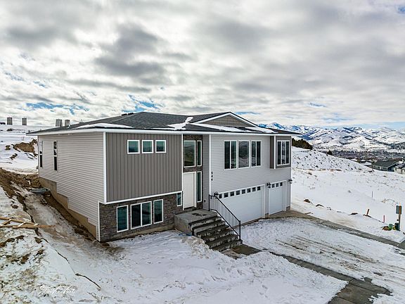 If a view is on your list you need to see this house! You can see American Falls Reservoir, the Big Southern Butte, the Sawtooth Mountain Range, the Lost River Range and the cities of Pocatello and Chubbuck. New construction means energy efficient, no repairs, (warranty!). Great room with lots of glass and natural light. The kitchen boasts a big walk in pantry. The master suite has a large walk-in closet, double sinks and a walk-in shower. The 3 car garage is double deep on one side and is heated. Come take a look you will be impressed!