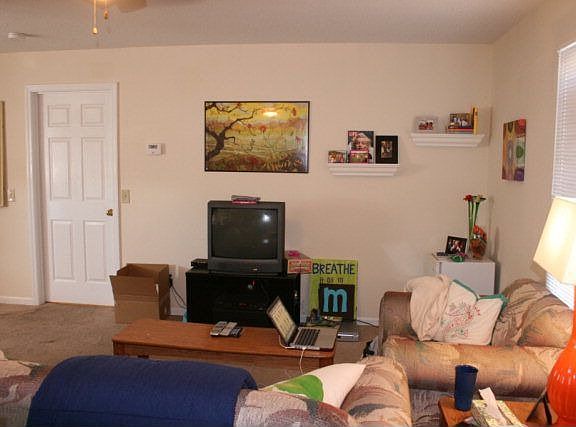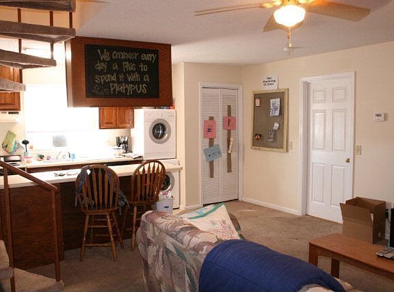 PRICED TO SELL! Great investment or Gameday condo facing the stadium. 2BD/2BA townhouse style unit with oversized bedrooms, walk in closets, and large baths. All appliances remain including D/W stove, fridge, & stack W/D. Leased for $900/mo until August 2012. Tons of cabinet & counterspace. 2 parking spaces, New Roofs & exterior painting 2 years ago.