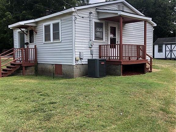 Move-In-Ready! Come see this charming two bedroom, one full bath situated on a picturesque cleared lot. It boasts a partially covered front and full covered side porch. The backyard includes a large 12 x 16 storage building that can be used as a workshop. This property has been zoned Residential-Mixed-Use. Conveniently located near restaurants and surrounding businesses. Upgrades include HVAC (2018), new roof (2021), New laminate flooring throughout, tile flooring in bath. Fresh neutral paint throughout. Inspections are welcome, however the property is being sold AS-IS. Owner is a North Carolina Real Estate Broker.