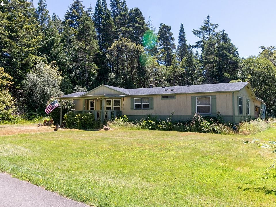Tranquil Country Living Just North of Florence. Nestled on over an acre of flat, usable land, this 1,755 sq ft residence offers everything you need for country living. Comfortable living space with 3 bedrooms and 2 baths. Enjoy the ease of an attached double garage and an additional carport for extra parking or storage.A separate Studio perfect for a home office, art studio, or guest space. Vaulted Ceilings add a sense of openness and light to the living areas. Primary Suite features French doors and an accessible roll-in shower for added convenience. There is a newer woodstove for cozy winters, and all appliances are included. A new septic system installed in 2018 and connected to public water. This property offers a unique opportunity to enjoy the peace and privacy of country living while still being close to the amenities of Florence. The large, level lot provides endless possibilities for gardening, recreation, or simply enjoying the outdoors. Don't miss out on this beautiful home with its ideal location and spacious lot!